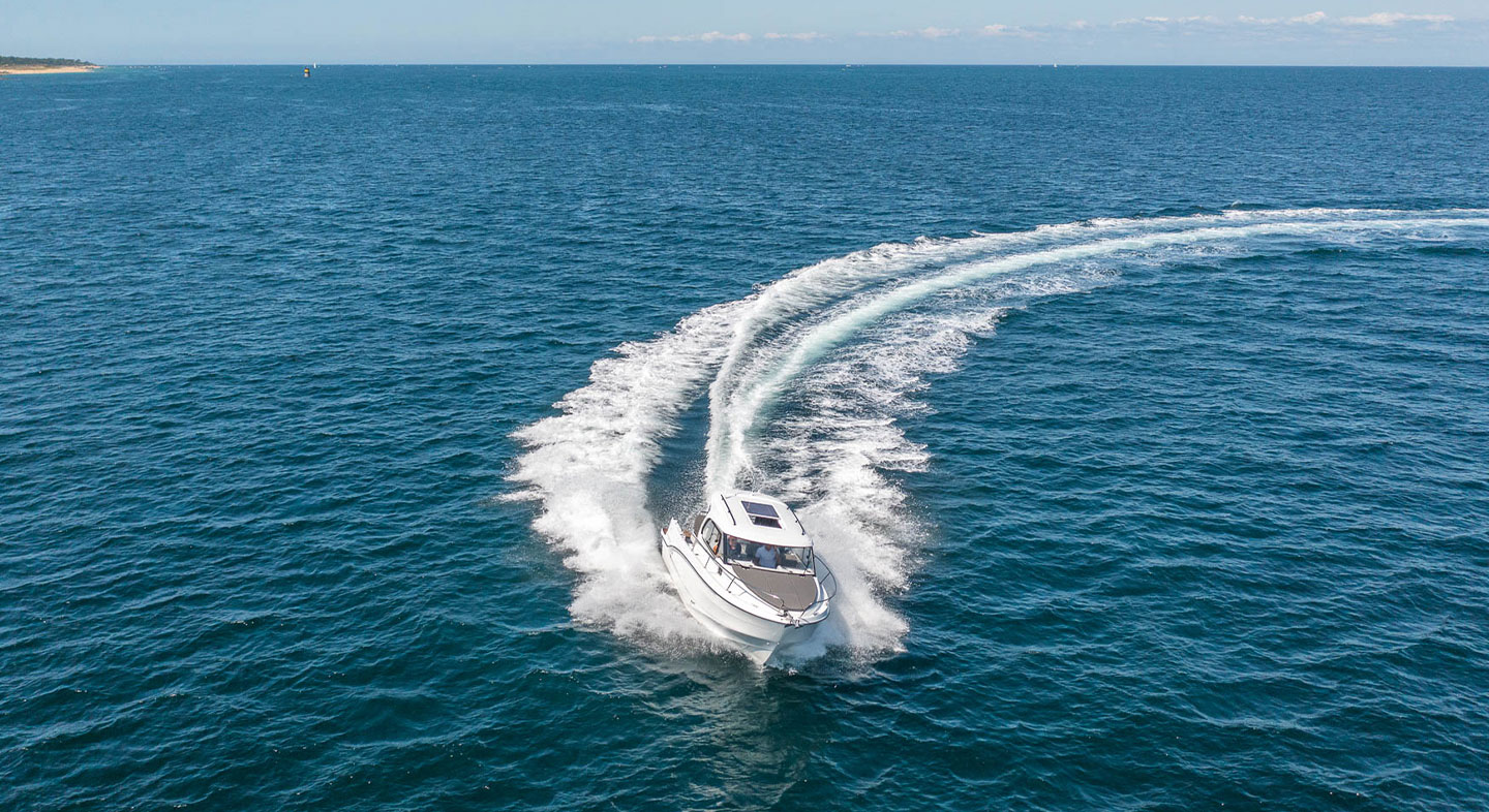 Com seu potente motor de 250 cavalos de potência, o ANTARES 8 pode atingir uma velocidade máxima de 35 nós, tornando-o o barco perfeito para passeios de um dia, pescarias e cruzeiros com a família.