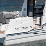 O ANTARES 8 mantém o design do casco em forma de tulipa que é o carro-chefe da linha icônica ANTARES, proporcionando excelente estabilidade na água e capaz de resistir e se comportar bem em todas as condições. O cockpit modular, na popa, garante o máximo conforto à tripulação. Outra característica notável é a estação de leme com design ergonômico, que tem espaço para um visor multifuncional Garmin opcional de 12 polegadas.
