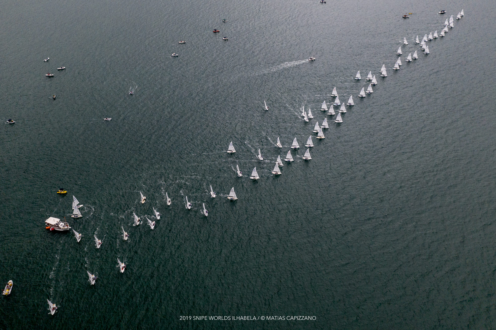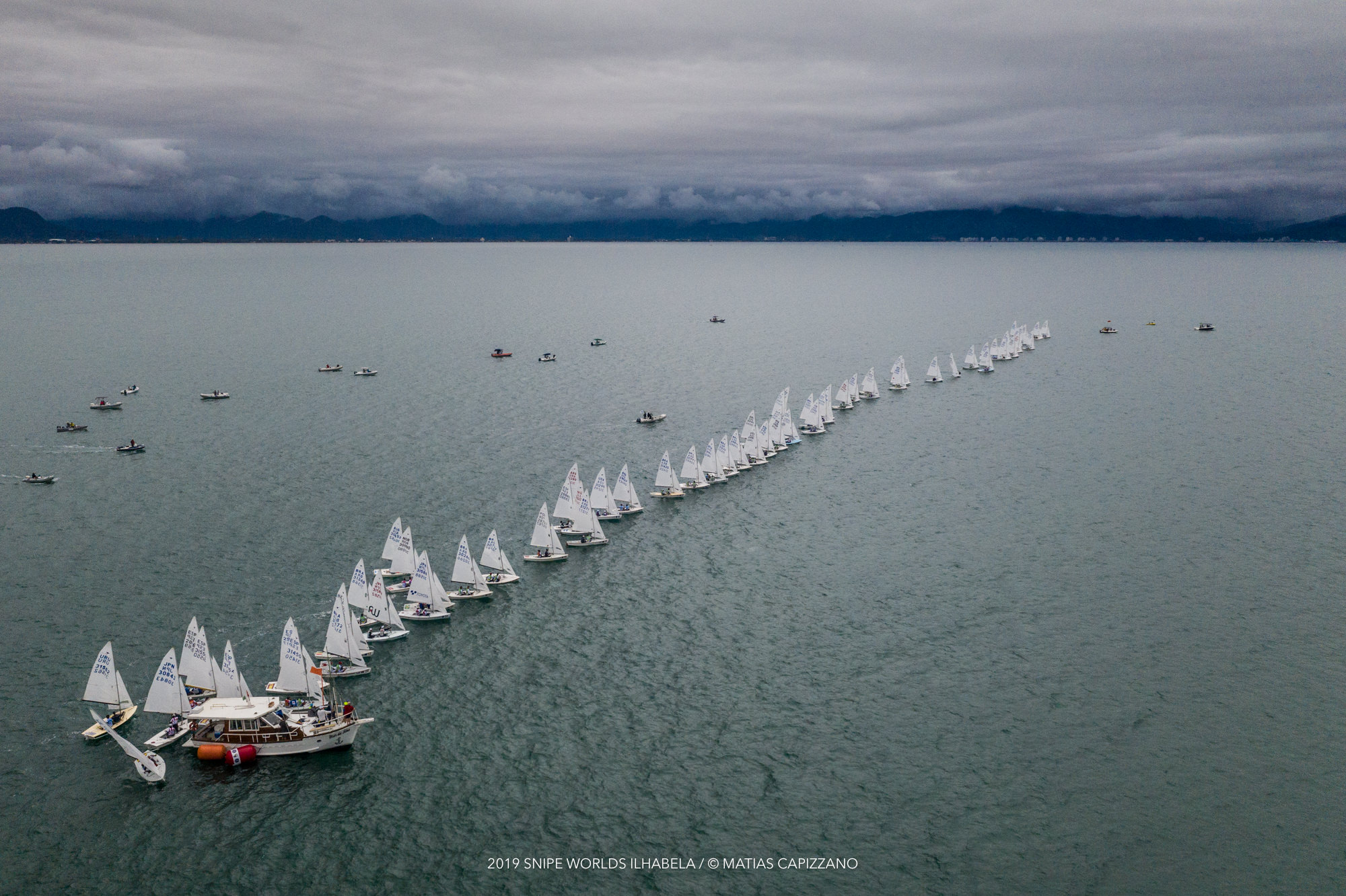 ”Como tem muito barco, os velejadores não querem ficar no chamado vento sujo e por isso acabam forçando”, disse Fabio Bodra, organizador do Mundial de Snipe 2019. ”Em condições de pouco vento e com um número grande de barcos, largar bem é fundamental, equivale a 50% de um bom resultado”.