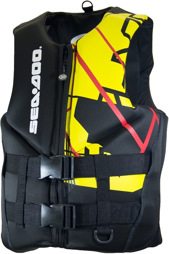 Com novos grafismos, o colete Sea-Doo Motion apresenta ótima relação entre custo e benefício. O modelo homologado pela Marinha Brasileira foi desenvolvido com revestimento externo em náilon ultra resistente. Possui flutuadores de espuma de polietileno, quatro tiras de tecido com fivelas de abertura rápida e cavas largas, para maior conforto. O produto ainda dispõe de dois anéis em “D”, um para conexão do cabo de segurança da chave da moto aquática e outro atrás da nuca, para fixação de óculos no colete.