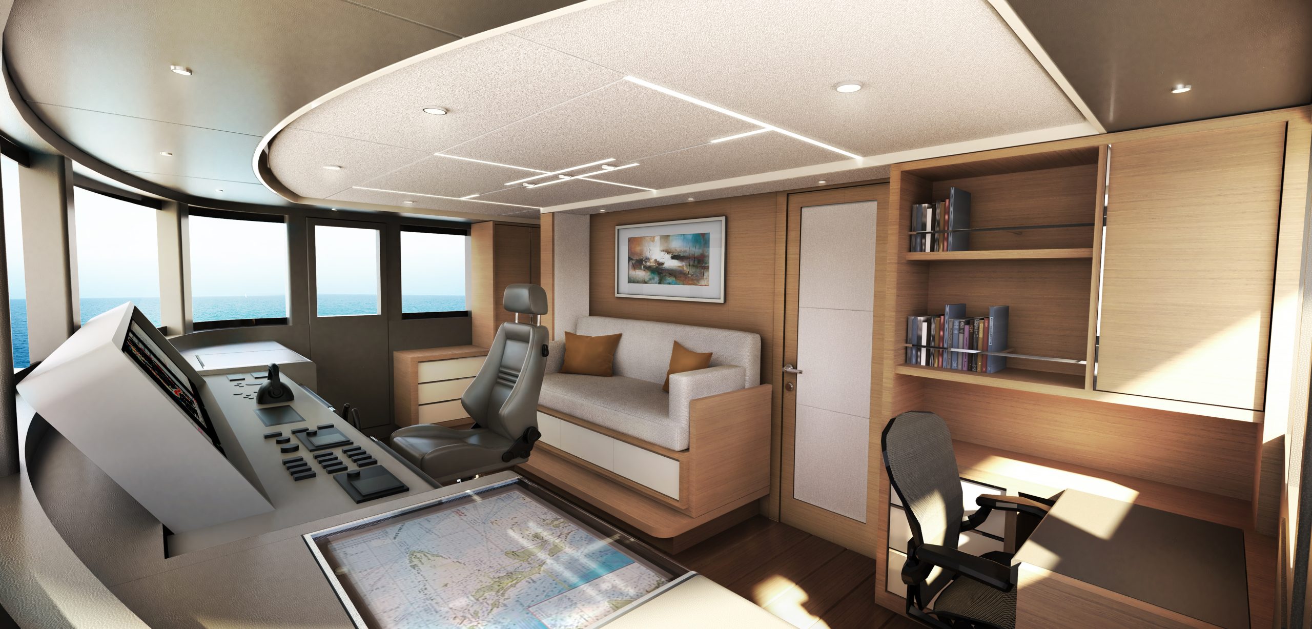 O Sky Lounge oferecerá a sensação de estar ao ar livre, abrindo-se para um convés a céu aberto que também irá sombrear o convés principal. O foredeck será uma área de reunião para amigos e familiares, com uma área de estar que rivaliza com os de iates muito maiores.