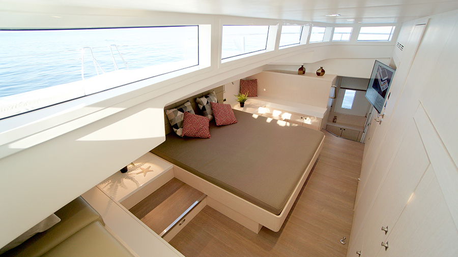 No convés inferior, há uma acomodação para até oito pessoas, incluindo uma cabine principal de feixe completo em suíte.