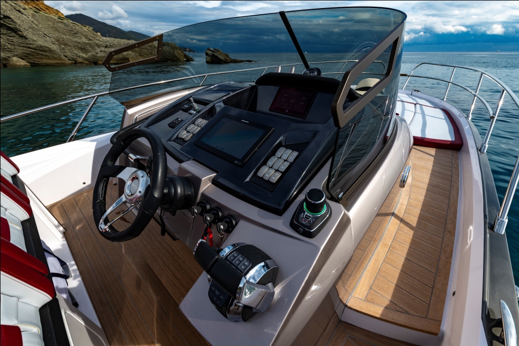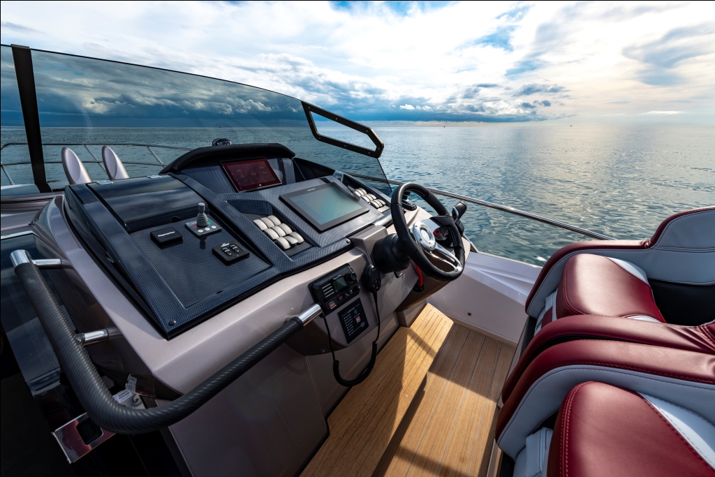 O cockpit da KL40 – Key Largo, um dos pontos fortes e mais originais da embarcação, é espaçoso e versátil, com sofás conversíveis em espreguiçadeiras e balcões laterais eletro-hidráulicos, proporcionando um ambiente convidativo para desfrutar do mar e da natureza. Com uma variedade de opções adicionais, como o T-top esportivo para maior conforto, a KL40 é uma embarcação com personalidade e presença, ideal para quem busca experiências extraordinárias.