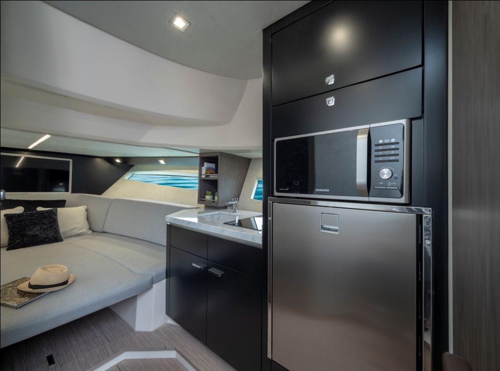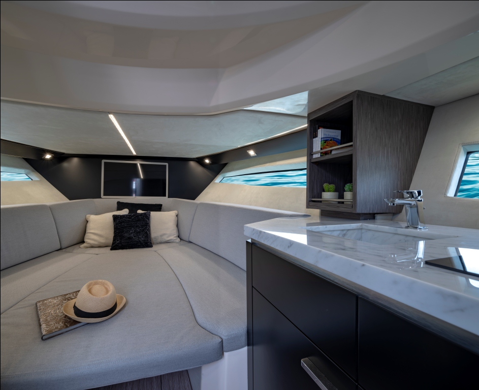 Esportiva e clássica, a KL40 – Key Largo, reflete o mais puro estilo italiano, mantendo o conceito e a elegância tão característicos da marca Sessa Marine. No interior, a sofisticação e a atenção aos detalhes estão presentes em cada linha de design da embarcação, que é ainda mais valorizado com as amplas janelas laterais panorâmicas, que  preenchem o barco de luz e oferecem uma vista deslumbrante do oceano.