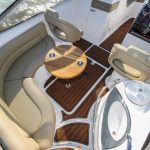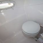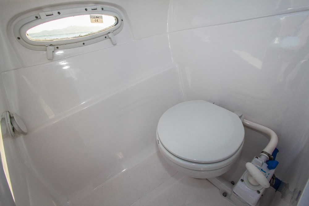 Logo acima do motor fica o solário de popa, que oferece espaço para um casal deitar-se ao sol com conforto. E para não abrir mão de conforto, a lancha oferece um banheiro fechado com WC de série, janela com abertura e ducha higiênica, para que você possa estender os passeios e oferecer conforto aos seus passageiros.
