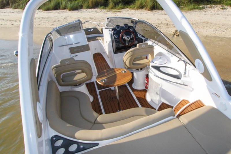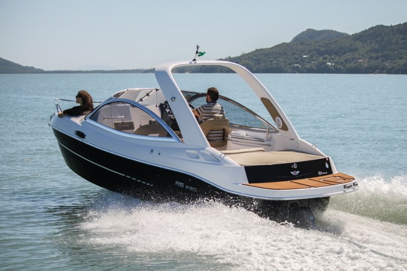 Pioneira na utilização de motores de centro-rabeta em lanchas de pequeno porte, a FS 230 oferece ainda tecnologia, desempenho e conforto.