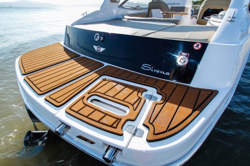 O espaço ganho pelo uso do motor centro-rabeta é surpreendente. A plataforma de popa é o local preferido da maioria do passageiros, devido ao seu fácil acesso à água, e facilita até mesmo na colocação de botas de wakeboard, por exemplo.
