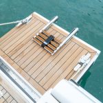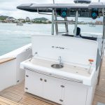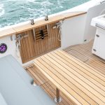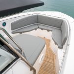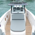 Com quase 12 metros de comprimento, a Fishing 390 Solarium possui console central que favorece a circulação pelas laterais e o convívio entre amigos e família. Se destaca pelo espaço gourmet ao centro e amplos sofás que contornam a embarcação na parte frontal e traseira. Além disso, o layout da embarcação inclui acessórios e espaços para o armazenamento para quem curte pescar, além de também duas portas hidráulicas nas laterais, que ampliam e levam mais conforto à popa.