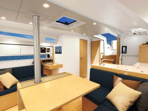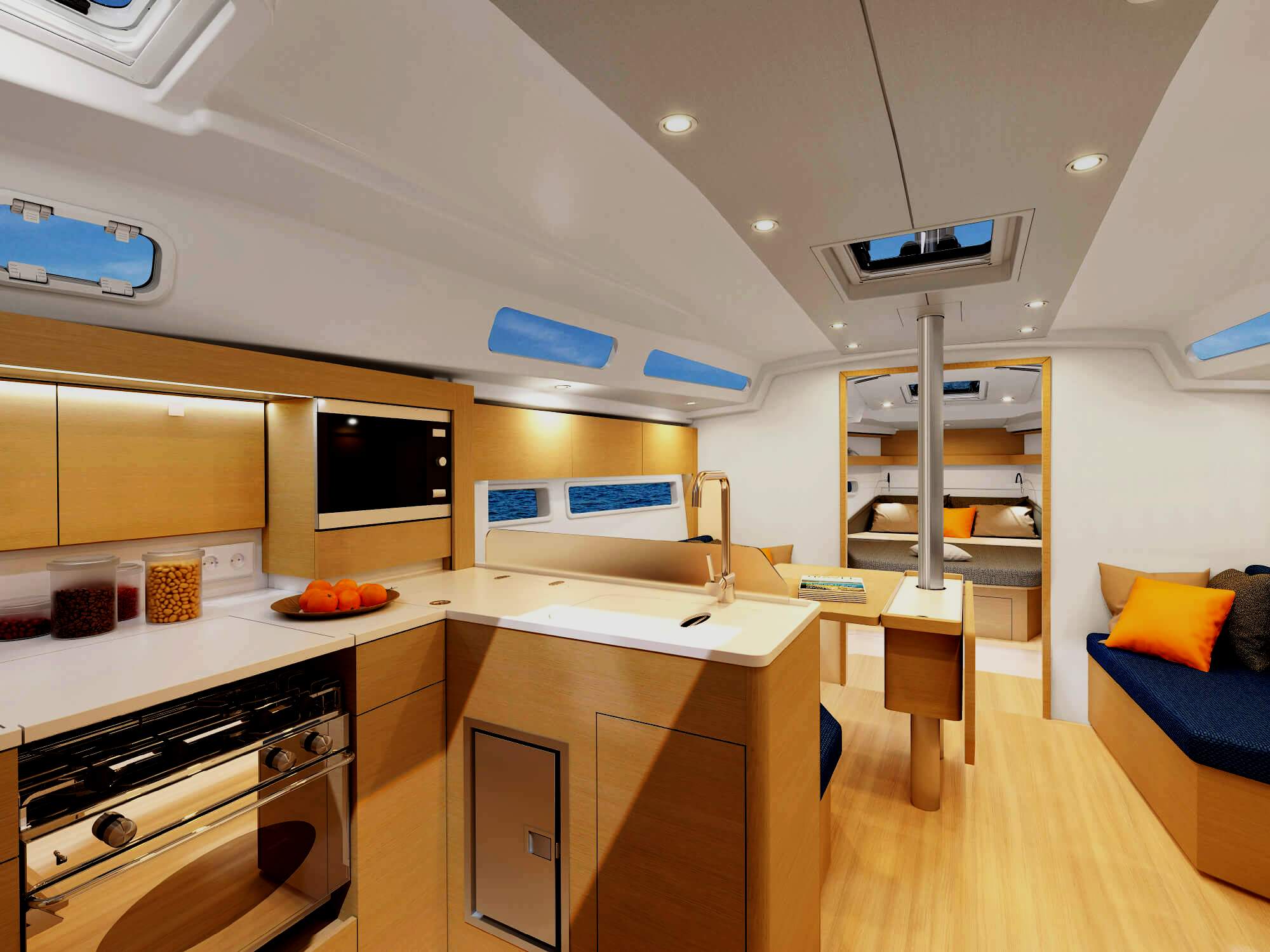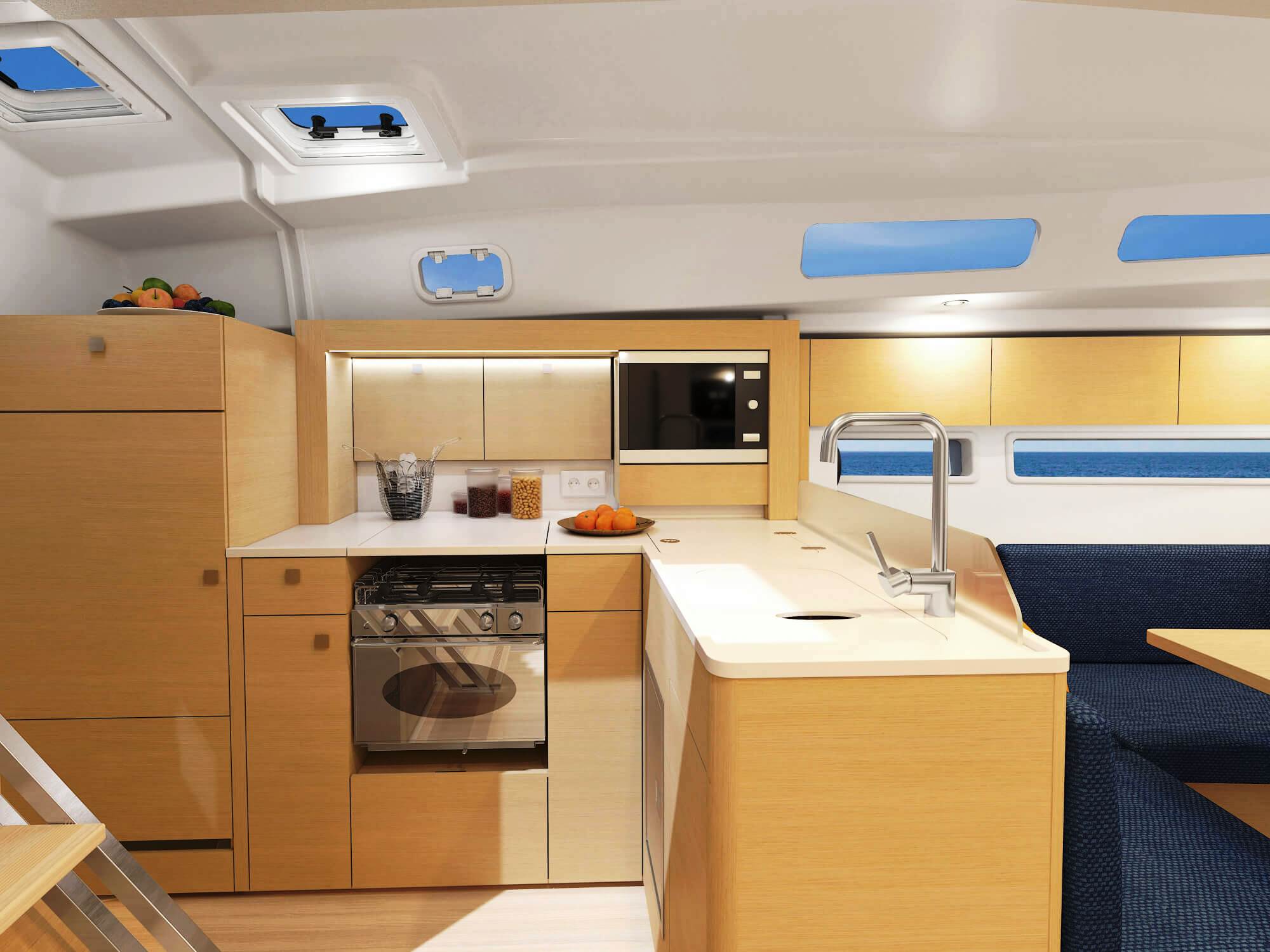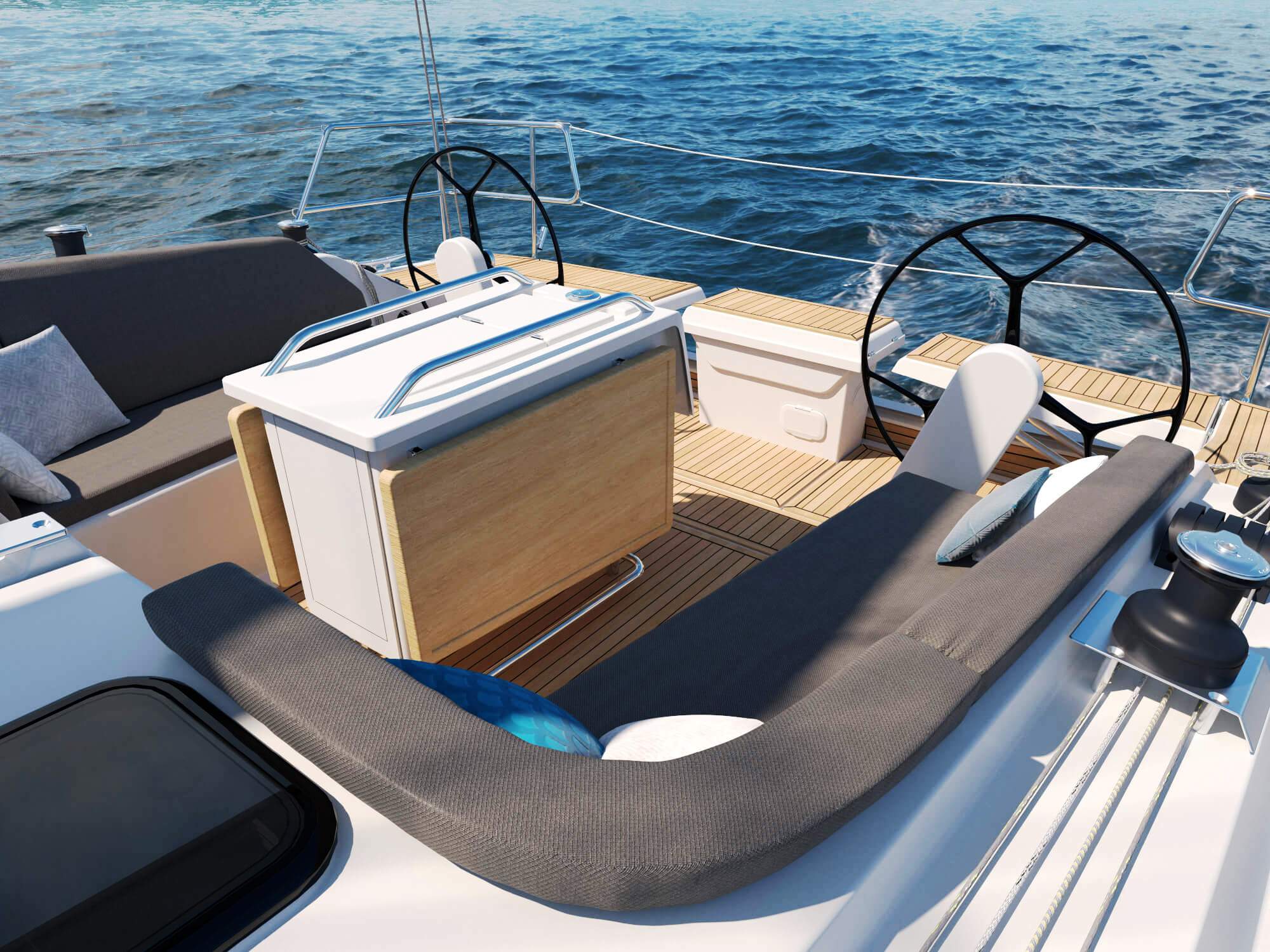 Extras luxuosos, como churrasqueira e geladeira na cabine, maior capacidade de refrigeração abaixo do convés ou um segundo banheiro separado na cabine do proprietário tornam o Hanse 360 único.