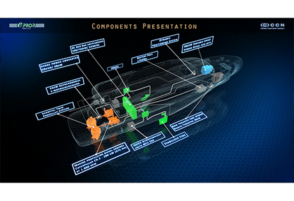 O design e a construção do sistema híbrido deste iate são, portanto, baseados em uma análise minuciosa do sistema de propulsão / geração de energia e de todos os riscos relacionados, com as soluções técnicas mais seguras e confiáveis implementadas a bordo. Os principais pontos de foco foram o sistema de propulsão, grupos geradores, atividades de instalação, materiais, configurações e modos operacionais e cenários de emergência.