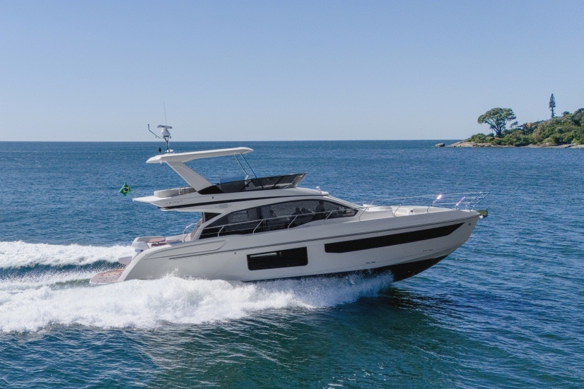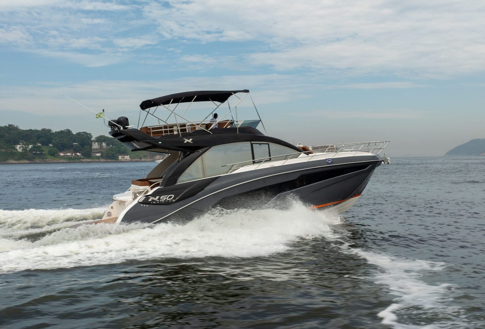 O estaleiro NX Boats apresenta a NX 50 Invictus Fly, reconhecida pelo conforto e design com toques de esportividade.