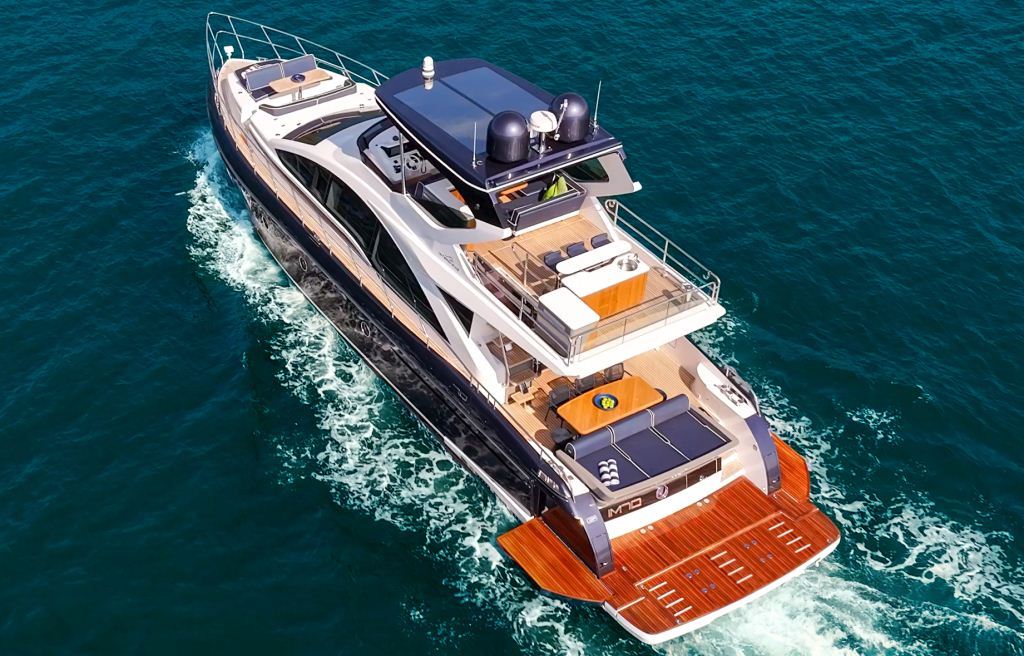 Do Brasil, a gigante Intermarine 70, com mais de 21 metros de comprimento e com tamanho equivalente a um apartamento de luxo de 4 suítes,