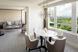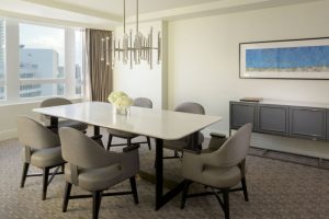 A Executive Suite possui 86 metros quadrados e uma vista de 270 graus do Oceano Atlântico e da cintilante Biscayne Bay. Destaque para o banheiro da suíte, com espaçosa banheira de hidromassagem e box de vidro. O espaço ainda conta com um bar com pia, mesa de jantar, confortável sofá com poltronas e um lavabo. A Grand Suite, por sua vez, possui 103 metros quadrados, bem distribuídos entre o quarto, o excelente banheiro, com uma grande banheira de hidromassagem e box separado, e a área de convivência, com espaço de jantar que abriga uma mesa para seis pessoas, sala de estar equipada com sofás, poltronas e uma televisão de 55 polegadas, bar com pia e lavabo.