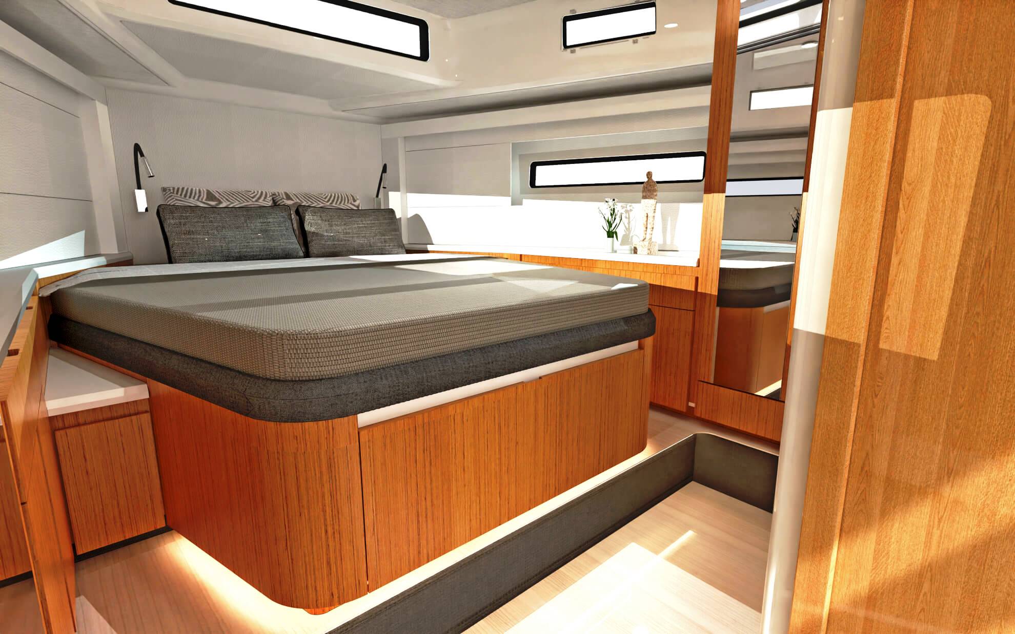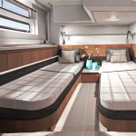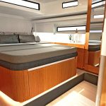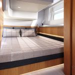 A terceira cabine também pode ser configurada como um espaço multifuncional, por exemplo para acomodar uma máquina de lavar com secadora integrada. Muita luz natural no salão e nas cabines e um conceito de ventilação bem pensado em ambos os conveses garantem um ambiente agradável em todo o barco.