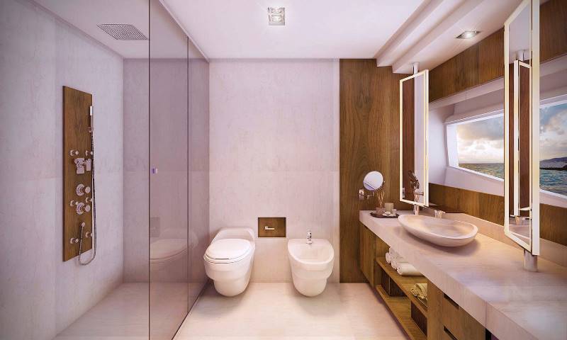 Detalhes deste Yacht revelam o critério elevadíssimo de qualidade e absoluto cuidado para projetar e construir a Intermarine 95. O projeto completo de todos os sistemas a bordo foi elaborado em 3D para garantir melhor montagem , além de prever com precisão todas as passagens de dutos e cabos, facilitando, inclusive, a manutenção.
