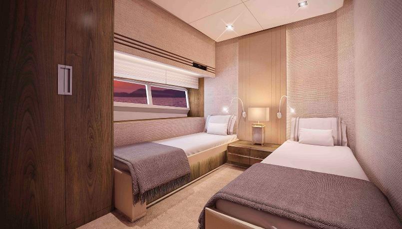 Concebida para ser silenciosa, a embarcação oferece um avançado sistema de isolamento acústico dividido em três partes. Para oferecer mais conforto, o piso do salão tem um sistema de isolamento próprio, independente da casa de máquinas.
