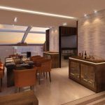 Nesta opção o salão é dividido em sala de estar, sala de jantar, cozinha e posto de comando.