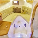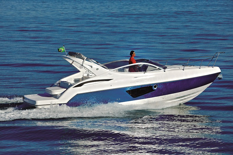 Uma embarcação feita para curtir o sol e o banho de mar com um cockpit que aproveita os espaços ao ar livre. Toda a diversão desse barco fica na popa. A plataforma tem um desnível para facilitar o banho, possui um chuveiro e uma escada de acesso ao mar. A área de convivência possui um sofá em L com capacidade para seis pessoas e ainda uma mesa. No mesmo ambiente há ainda um cooktop com duas bocas e pia com armário.