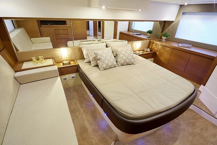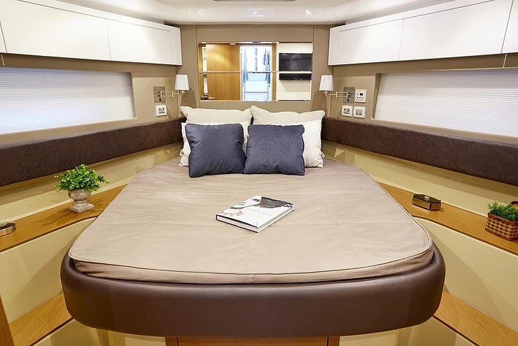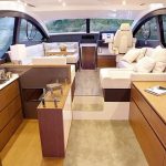 “Os atrativos da Schaefer 580 não estão apenas na maneira inovadora de pilotar. Com três camarotes, dois banheiros amplos e cozinha completa, uma especial varanda lateral traz ainda mais sofisticação à embarcação”