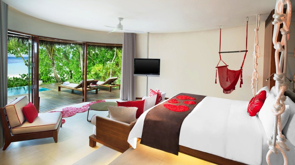 Cada quarto, com design luxuoso e criativo, apresenta o estilo de assinatura de W Maldives, com requinte e personalidade infundidos em conceitos de design que se misturam com a beleza da vida marinha colorida do Oceano Índico e do cenário natural, com toque cultural, das Ilhas Maldivas.