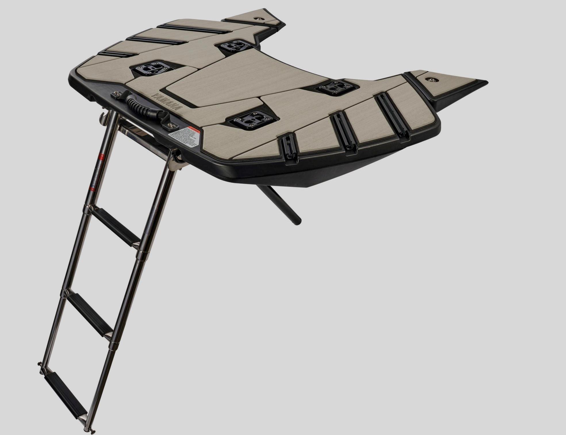 Um dos lançamentos é a Plataforma RecDeck®, que expande o espaço útil na popa do WaveRunner e serve como base multifuncional para diversas atividades. Com integração total à escada de reembarque, revestimento antiderrapante MarineMat e sistema de trilhos modulares, o acessório permite a instalação rápida e segura de outros equipamentos, como rack, cooler e suporte de pesca.